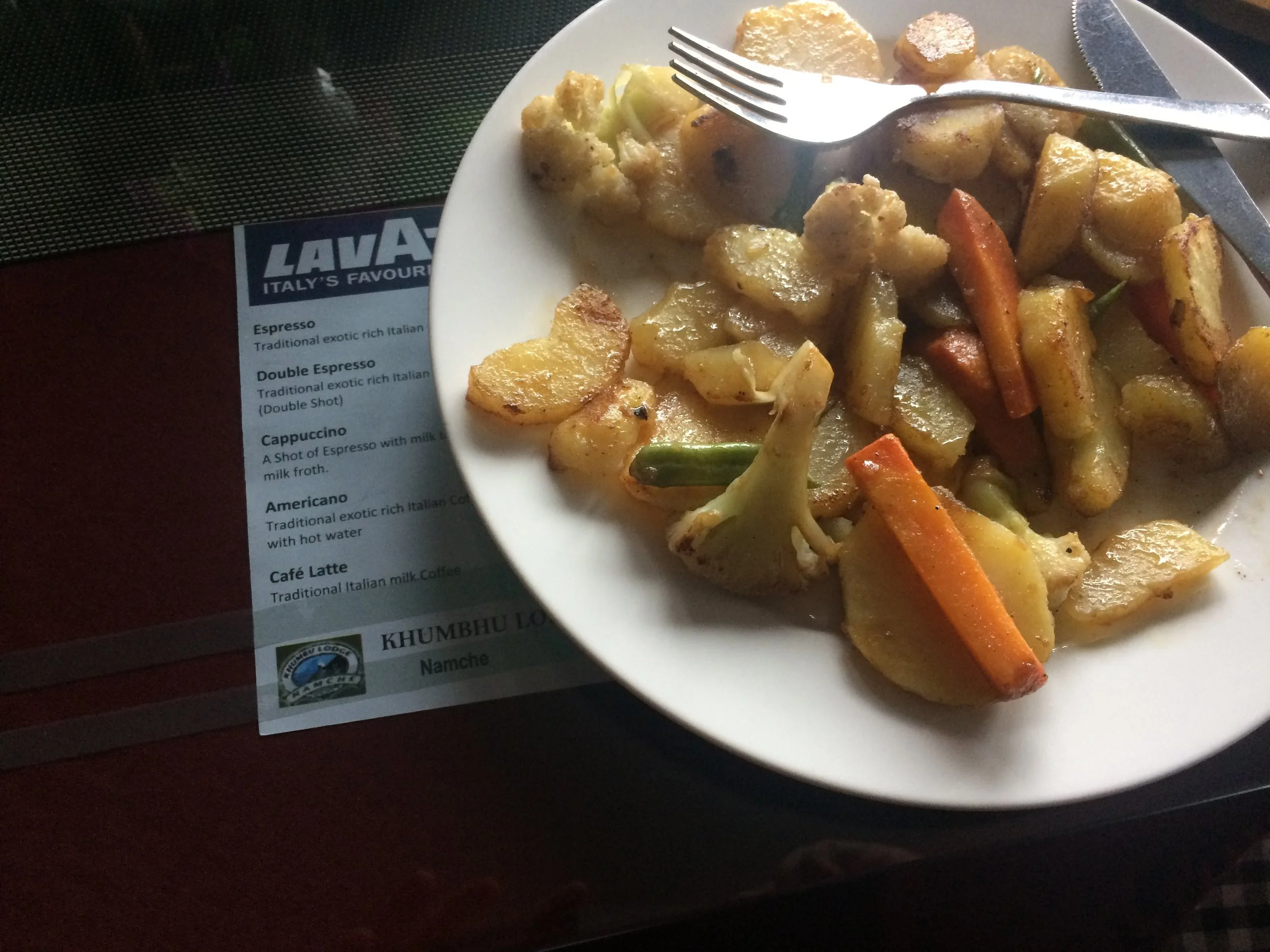 Easy morning in Namche, I head out for breakfast where I find Mrs. Ahuja preparing some aloo parathas for me as we spoke of Indian food the night before. I got an endless supply of parathas coming to my plate and I had my first filling meal in all these days. It was so good to be there in the cold at an elevation and have such food. Thanks to her, I did. Left the place after paying my bills and headed out for Lukla at late hours, 8:30 a.m. The descend from Namche was not ending until I finally heard the river not very distant and it brought relief. With a full stomach I skipped lunch at 11 and kept on heading straight to Lukla. Reaching Phakding and going to the same lodge for food where I took my shoes off and relaxed and ate some dal bhaat again and left again for Lukla after 1 hour, at 4. Crossing checkpoints and some tiny towns and with darkness right at the doorway I see the silhouette of the gateway I entered on Day 1. Walked on to the airport side and tried to look for lodges which were open in this off season. With some asking around I ended up in Buddha Lodge. The place was quiet with not many people. It actually just had 2 Irish boys who had been stuck there without money for 2 days cause the flights to Lukla were being cancelled. Had some light food because I was too low on cash and there was no way to withdraw money anymore. I went to my room and slept for good with my shoes packed and my crocs on duty.